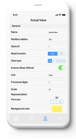 Разработанное приложение создает интерфейсы для заводов и оборудования как на смартфонах, так и на планшетах. Являясь нативным приложением, эта версия обеспечивает превосходный пользовательский опыт при повседневном использовании и не требует больших усилий для установки. Протокол промышленной шины Modbus TCP позволяет приложению взаимодействовать практически с любым оборудованием. Пользователи могут в любой момент узнать о состоянии оборудования и отправить команды на его блок управления.